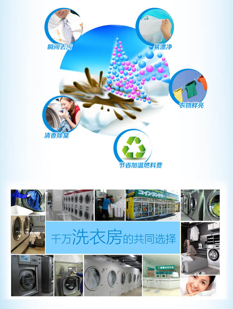 使用說明:60℃以上使用,每100公斤干布草用500-800克,洗滌溫度75℃。